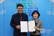 미담타임스 김준완 기자 | 울산 동구는 4월 27일 오후 2시 국공립 e편한세상어린이집 수탁자로 선정된 이은정씨와 위탁 계약을 체결하고 위탁계약 증서를 수여했다. 동구는 e편한세상어린이집 위탁 기간이 올해 6월말로 만료됨에 따라, 지난 4월 17일 동구보육정책위원회 심의를 통하여 수탁자를 선정했으며, 수탁자는 향후 5년 간 어린이집 운영과 시설관린 전반에 대해 위탁 운영한다. 이은정씨는 국공립어린이집 원장 및 보육교사 경력이 20년 이상 된 보육전문가로, 취약보육 실천 및 열린 어린이집 선정 등 부모가 믿고 맡길 수 있는 보육환경 조성을 위해 노력을 해왔다. 이은정씨는 “아이들이 편하게 생활하고, 보육 교직원들이 즐겁게 일할 수 있는 어린이집이 되도록 더욱 노력하겠다.”라고 말했다.