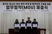미담타임스 정주환 기자 | 경기도미래세대재단은 12일 옛 경기도청사 신관 4층 대회의실에서 수원·성남·시흥시청소년청년재단과 ‘경기도 청년 정책 연계 및 협력체계 구축 업무협약’을 체결했다. 협약의 핵심은 ▲청년 분야 공동사업 기획 ▲정책·사업 정보 공유 ▲참여 기반 강화다. 4개 재단은 청년 일경험, 진로·취업, 사회참여를 잇는 연계형 프로그램을 공동 발굴하고, 공동 조사·연구와 정책 제안으로 협력 범위를 넓힐 계획이다. 참여기구와 네트워크 교류도 확대한다. 프로젝트와 캠페인을 함께 추진하고, 전문 인력과 강사, 공간, 콘텐츠, 운영 노하우 등 인적·물적 자원을 상호 연계한다. 협약 이후에는 정례 협의체를 운영해 공동 과제를 발굴하고 협력 사업을 단계적으로 확대한다. 김현삼 경기도미래세대재단 대표이사는 “청소년기 경험이 청년기 지원으로 자연스럽게 이어지도록 재단 간 협력을 본격화하는 출발점”이라며 “공동 과제를 꾸준히 발굴하고 협업 체계를 촘촘히 다져 정책이 현장에서 성과로 이어지게 하겠다”라고 말했다.