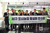 미담타임스 정주환 기자 | 인천 서구의회 '서구 도시농업 활성화 연구회'(대표 의원: 김남원)가 06일 관내 도시형 스마트팜 현장을 방문하며 도시농업 활성화를 위한 연구 활동을 이어갔다. 이번 현장 방문은 관내 도시농업 현황 파악하고 지역에 맞는 6차산업 실증모델 자료수집 등을 위해서다. 이곳 스마트팜 농장은 2가지의 특별함이 있다. 하나는 서구 원도심의 상징인 신현동 중심지 골목에 자리잡은 인천 최초의 도심형 스마트팜이고, 또 하나는 2024년 연구회에 집중 연구과제 《지역경제 활성화와 지역특화 재생을 위해 개발한 도시농업 및 도시재생 정책을 결합한 ‘문화재생산업’과 ‘6차산업 모델’ 구축 방안 마련》을 제안했던 실증모델이다. 스마트팜과 운영을 책임지고 있는 이정의 이사장은 “9월 4일 문을 열었는데 벌써부터 여러 지자체에서 사례 벤치마킹을 위해 다녀갔다”라며 “샐러드 카페뿐만 아니라 체험교실도 입소문을 타고 문의가 많다” 말했다. 김남원 대표 의원도 "도시농업을 단순한 농작물 생산 틀에서 확장하여, 유휴지 등 지역 자원 활용을 접목한 교육·체험·관광 자원으로 전환하는 방식으로 도시농업의 교육적·사회적·경제적