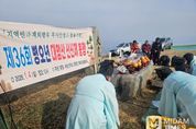 미담타임스 김교환 기자 | 대양면산우회가 주관하고 대양면과 재외대양향우회가 후원하는 대암산 산신제가 4일 낮 12시 대양면 소재 대암산 정상에서 봉행됐다. 이날 산신제에는 김윤철 합천군수와 박수영 대양면장, 합천군의회 신경자 의원과 성종태 의원을 비롯해 김용한 재부대양향우회장, 나상정 합천농협장, 강원수 대양장학회 이사장, 심상윤 대양초등학교 총동창회장, 대양면 기관사회단체장, 재외향우와 지역민 등 150여 명이 참석해 자리를 함께했다. 산신제는 대양산우회 김석중 회원이 집례를 맡아 진행됐으며, 초헌관은 박수영 대양면장, 아헌관은 김용한 재부대양향우회장, 종헌관은 최윤자 대양체육회장이 각각 맡아 제를 올렸다. 축관은 정진화 산우회 부회장이, 좌집사는 이재용 회원이, 우집사는 윤석근 회원이 맡아 경건한 분위기 속에서 의식을 이어갔다. 산신제를 마친 뒤에는 참례자 모두가 대암산 정상 아래 주차장으로 자리를 옮겨 대양산우회 부녀회에서 준비한 떡국과 다과를 함께 나누며 지역과 고향 발전을 위한 덕담을 주고받는 시간을 가졌다. 김윤철 합천군수는 “올 한 해 모두가 뜻하는 일들이 큰 보람으로 성취