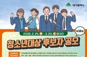 미담타임스 김교환 기자 | 대구광역시는 건강하고 바른 성장으로 지역사회의 귀감이 된 청소년을 발굴·포상하기 위해 ‘2026년 제38회 대구광역시 청소년대상’ 후보자를 2월 24일부터 3월 20일까지 공개 모집한다. 1989년 첫발을 내디딘 ‘청소년대상’은 건강하고 올바른 청소년 상(像) 정립을 위해 매년 각 분야의 모범 청소년을 시상해 왔다. 지난해까지 총 250명(대상 36명, 우수상 111명, 장려상 103명)의 수상자를 배출하며 지역을 대표하는 청소년 포상으로 자리 잡았다. 후보자 자격은 공고일(2.23.) 현재 대구시에 1년 이상 계속 거주하고 있는 만 9세 이상 24세 이하 청소년으로, 구청장·군수, 학교장, 청소년 관계기관장 등의 추천을 통해 접수할 수 있다. 시상 부문은 △선행효행 △창의인재 △푸른성장 3개 분야며, 선정 인원은 대상 1명을 포함해 각 부문별 우수상 1명, 장려상 1명씩 총 7명이다. 대상은 수상 후보자 중 여러 면에서 성품과 행동이 가장 훌륭해 모든 청소년의 귀감이 되는 청소년에게 수여된다. 선행효행 부문은 지역사회를 위한 봉사활동 중 선행을 하거나, 부모