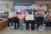 미담타임스 김준완 기자 | 예천군 환경관리과는 지난 24일 김천시 감문면과 함께 ‘고향사랑기부금 상호 기부’를 추진하며 지자체 간 상생협력 체계를 공고히 했다. 이날 양 지자체 직원 각 10여 명은 자발적인 참여 가운데 서로의 지역에 고향사랑기부금 100만 원을 상호 기탁하며 지역 상생에 동참했다. 이번 행사는 지난달 김천시 기후에너지과와 200만 원 상호 기부에 이은 두 번째 기탁으로, 이로써 예천군 환경관리과와 김천시 간의 상호 기부액은 300만 원을 달성했다. 황옥희 예천군 환경관리과장은 “이번 김천시와의 상호 기부는 서로의 지역을 응원하는 따뜻한 실천이자 상생의 마중물”이라며 “앞으로도 작은 정성들이 모여 더 큰 상생의 가치를 만들어갈 수 있도록 지자체 간 교류와 협력을 이어가겠다”고 밝혔다.