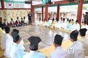 미담타임스 김준완 기자 | 경주시는 25일 경주향교에서 유도회원과 유림회원 등이 참석한 가운데 ‘2025년 경주향교 추계 석전대제’를 엄숙히 봉행했다. 이날 제례에서는 초헌관에 이종암 전교, 아헌관에 김병호 전 임란의사추모회장, 종헌관에 김종완 유도회 황성지회장이 각각 헌작을 맡아 전통 의례를 이어갔다. 석전대제는 문묘에서 공자를 비롯한 성현들에게 제향을 올리는 전통 유교 의식으로, 매년 봄(음력 2월 초정일)과 가을(음력 8월 초정일) 두 차례 봉행된다. 경주향교는 신라 신문왕 2년(682년) 국학이 처음 세워진 유서 깊은 장소로, 고려시대에는 향학, 조선시대에는 향교로서 지방 교육의 중심지 역할을 해왔다. 2003년 문화관광부로부터 시범향교로 지정됐으며, 2011년에는 대성전이 보물로 지정되며 그 역사적·문화적 가치를 인정받았다. 현재의 경주향교는 조선 성종 23년(1492)에 성균관을 본떠 개축됐으며, 임진왜란으로 소실된 후 선조 33년(1600)부터 대성전을 비롯한 제향 공간이 재건됐고, 광해군 6년(1614)에 명륜당과 강학 공간이 완공되면서 원형 복원이 마무리됐다.