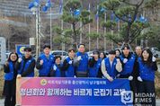 미담타임스 김준완 기자 | 바르게살기운동 울산남구협의회(회장 김동현)는 회원 15명이 참여한 가운데 와와 삼거리 일원에서 노후된 군집기를 교체하고, 주변 환경 정비 활동을 실시했다고 30일 밝혔다. 이번 활동은 장기간 게양으로 훼손된 군집기를 새 군집기로 교체하고, 인근 지역의 쓰레기 수거 등 환경 정비를 병행해 쾌적한 거리 환경을 조성하기 위해 마련됐다. 특히 이날 행사에는 청년회 회원들이 적극 참여해 세대가 함께하는 봉사활동이라는 점에서 더욱 의미를 더했고 회원들은 추운 날씨 속에서도 자발적으로 참여해 군집기 교체 작업과 환경정비를 성실히 수행하며 바르게살기운동의 실천 정신을 몸소 보여줬다. 김동현 회장은 “군집기는 바르게살기운동의 핵심 가치를 지역사회에 알리는 상징적인 매개체라고 생각한다”며 “추운 날씨에도 뜻깊게 활동에 함께해 준 모든 회원분들께 감사드린다”고 말했다. 바르게살기운동 울산남구협의회는 앞으로도 지역사회 발전과 올바른 사회문화 조성을 위해 지속적인 봉사와 실천 활동을 이어갈 계획이다.