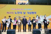 미담타임스 김준완 기자 | 경주시는 지난 27일, 경주실내체육관에서 ‘제29회 노인의 날 기념식’을 열고 국가와 지역사회 발전에 기여해온 어르신들의 노고에 감사의 뜻을 전했다. 노인의 날은 '노인복지법'에 따라 매년 10월 2일로 지정된 법정기념일로, 경주시는 지역 어르신을 격려하고 공경 문화를 확산하기 위해 매년 기념행사를 개최하고 있다. 올해 기념식은 경주시가 주최하고 (사)대한노인회 경주시지회(회장 구승회)가 주관했으며, 주낙영 경주시장, 이동협 경주시의회 의장, 구승회 지회장을 비롯해 지역 어르신 2,000여 명이 참여한 가운데 성황리에 진행됐다. 본행사는 노인강령 낭독, 노인복지 증진 유공자 및 모범 어르신 표창, 축사, 축하공연 순으로 이어졌다. 이날 표창은 노인복지 향상과 지역사회 발전을 위해 헌신해 온 어르신들의 공로를 기리기 위해 수여했다. 구승회 대한노인회 경주시지회장은 “어르신들의 지혜와 헌신이 오늘의 경주를 만들었다”며, “서로 배려하고 존중하는 노인 문화를 확산해 나가겠다”고 말했다. 주낙영 경주시장은 “2025 APEC 정상회의의 성공적인 개최 과정