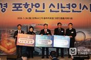 미담타임스 김준완 기자 | 지난 26일 서울 더 플라자호텔에서 열린 ‘2026년 재경 포항인 신년인사회’에서 재경 출향인들이 고향 발전을 염원하는 마음을 담아 고향사랑기부금을 기탁하며 뜨거운 고향 사랑을 실천했다. 이날 행사에는 김정배 전 문화체육관광부 차관, 박종호 재경포항향우회장, 이재원 재경흥해향우회장, 이정자 재경포항여자중고등선후회장 등 수도권 각계각층에서 활동 중인 주요 인사들이 고향 포항의 발전에 힘을 보탰다. 박종호 재경포항향우회장은 “새해를 맞아 고향 선후배들과 함께 포항에 실질적인 힘을 보탤 수 있어 매우 뜻깊다”며, “타향에서도 고향 포항이 더 살기 좋은 도시로 발전할 수 있도록 향우회 차원의 관심과 노력을 아끼지 않겠다”고 밝혔다. 이강덕 포항시장은 “변함없는 애정으로 고향의 든든한 버팀목이 되어주시는 재경 출향인분들께 깊은 감사를 드린다”며, “기탁해주신 소중한 기부금은 취약계층 지원과 주민 복지 향상 등 포항의 구석구석을 살피는 사업에 소중히 사용하겠다”고 화답했다. 한편, 포항시는 이날 행사장에 고향사랑기부제 및 지역 농수산물 홍보 부스를 운영해 향우들의 눈길을 사로잡았다.