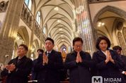미담타임스 김교환 기자 | 이재명 대통령과 김혜경 여사가 25일 서울 중구 명동대성당에서 열린 성탄 대축일 미사에서 기도를 하고 있다.