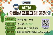 미담타임스 황명수 기자 | 사천시는 관내 유아숲체험원 5개소(수양공원, 초전공원, 망산공원, 월성공원, 자연휴양림)와 사천 케이블카 자연휴양림에서 운영하는 2026년 산림교육(유아숲·숲해설) 프로그램 참여자를 모집한다고 22일 밝혔다. 이번 프로그램은 4월 1일부터 11월 22일까지 운영되며, 사천시는 2025년 월성공원 유아숲체험원을 신규 조성함에 따라 올해 총 5개소의 유아숲체험원에서 다양한 유아숲체험 프로그램을 운영할 계획이다. 또한 사천 케이블카 자연휴양림에서는 올해 처음으로 숲해설 프로그램을 운영해 휴양림 방문객들에게 숲의 생태와 자연환경에 대한 이해를 높이는 기회를 제공할 예정이다. 프로그램은 유아숲지도사 2명과 숲해설가 1명이 진행하며, 유아숲체험원에서는 어린이집·유치원 유아를 대상으로, 사천 케이블카 자연휴양림에서는 시민과 방문객을 대상으로 체험형 산림교육을 실시한다. 프로그램 신청은 3월 23일부터 경남숲교육협회 홈페이지에서 가능하며, 자세한 사항은 경남숲교육협회 사무국으로 문의하면 된다. 시 관계자는 “관내의 유아들과 시민들이 숲에서 자연을 체험하며 건강하고 즐거운 시