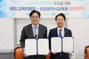 미담타임스 박민정 기자 | 인천광역시교육청은 18일 도성훈 교육감과 김영호 교육위원장을 비롯해 양측 관계자들이 참석한 가운데, 국회 교육위원회와 ‘독서국가 독서인천’ 추진을 위한 업무협약을 체결했다. 국회 교육위원장실에서 열린 이번 협약식은 인공지능(AI) 시대에 필수적인 창의·비판적 사고 역량을 함양하고, 학교와 가정, 마을을 잇는 시민 독서문화 생태계를 확산하기 위한 협력체계를 구축하고자 마련했다. 양 기관은 이번 협약에 따라 인천시교육청의 독서 정책을 생애주기별 독서교육 모델로 확산하고, 국회 차원의 입법·제도적 지원과 교육청의 현장 실행력을 연계해 ‘독서국가 교육 대전환 프로젝트’의 실행 기반을 함께 다져나가기로 했다. 주요 협약 내용은 ▲독서 골든타임(5~9세) 조기 독서체계 확립 ▲책 읽는 학교 정착을 통한 학생 독서습관 형성 ▲가정독서혁명 확산 및 가족 단위 독서문화 조성 ▲1마을 1권 읽기 등 지역 공동체 기반 독서문화 활성화 ▲독서국가 생태계 기반 구축 및 제도적 확산 등이다. 인천시교육청은 이번 협약을 통해 인천의 ‘읽걷쓰’가 국회의 ‘독서국가’ 비전과 결합함으로써, 학교를 넘어