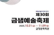 미담타임스 김교환 기자 | 부산시 금정구가 주최하고 금정구 문화예술인협의회(회장 도태근)가 주관하는 10월 31일부터 11월 9일까지 금정문화회관 은빛샘홀, 금샘미술관 전시실, 야외광장에서 ‘제30회 금샘예술축제’를 개최한다. 금샘예술축제는 국악·무용·문인·미술·사진·서예·연극·연예인·음악 등 9개 협회로 이루어진 금정구 문화예술인협의회에서 주관하는 지역대표 문화예술축제로, 30년째 매년 가을, 금정구 예술인들의 수준 높은 공연과 전시로 금정구 문화예술의 품격을 높여온 순수 종합예술축제다. 10월 31일 금정문화회관 은빛샘홀에서 개막 공연인 연극협회의 ‘늙은 자전거’를 시작으로, 11월 1일 음악협회의 ‘금샘열린음악회’, 11월2일 연예인협회의 ‘금정구민 현장노래방’이 진행된다. 아울러, 10월 31일부터 11월 9일까지 금샘미술관 전시실과 야외광장에서 서예협회의 ‘금정구서예인협회전’, 사진협회의 ‘금샘사진전’, 문인협회의‘깃발시화전 '파란 하늘 아래 시어가 펄럭이다'’이 진행된다. 올해 예술제에 참여하지 않은 국악협회, 무용협회와 미술협회는 내년에 더욱 풍성하게 준비하여 참여할 예정이다. &nbs