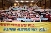 미담타임스 김준완 기자 | 지난 12월 17일 국회의원회관 대회의실에서 김형동 국회의원과 임미애 국회의원이 공동 주최한 ‘경상북도 국립․공공의대 설립 국회토론회’가 열렸다. 이날 토론회에는 이철우 경상북도지사, 권기창 안동시장 등 지자체 주요 인사와 경상북도 국립의과대학 설립 범시도민단을 포함한 시민단체 관계자 등 약 450명이 참석해 경북 지역 의료 여건과 국립의과대학 설립 필요성에 대한 논의를 이어갔다. 또한 권오을 국가보훈부 장관, 김도읍 국민의힘 정책위원회 의장, 김영호 더불어민주당 교육위원회 위원장 등 여야 의원 30여 명이 참석해 경북 국립의대 설립에 대한 관심을 보였다. 1부 개회식에서는 참석자들이 ‘경북 도민의 염원, 국립․공공의대 설립’이라는 문구가 적힌 손팻말을 들고 지역 의료 현안에 대한 공감의 뜻을 함께 표현했다. 2부에서는 유천 국립목포대 의과대학설립추진단 부단장이 ‘전남 국립의대 설립 현황 및 계획’을, 정태주 국립경국대학교 총장이 ‘경북도 국립․공공의대 설립의 필요성과 추진 방향’을 주제로 발표했다. 이어진 토론에서는 정태주 총장이 좌장을 맡고 김윤 국회의원,
