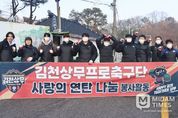 미담타임스 김준완 기자 | 김천상무 임직원과 팬이 함께 지역 사회에 온기를 전했다. 김천상무프로축구단이 12월 17일, 김천시 모암동 일대를 찾아 ‘사랑의 연탄 나눔’ 봉사활동을 진행했다. 행사에는 김천상무 임직원과 함께 ‘2025 팬즈데이 참여자가 함께 했다. 김천상무는 관내 에너지 취약 계층의 따듯한 겨울에 보탬이 되고자 2022년부터 ‘사랑의 연탄 나눔 행사’를 이어오고 있다. 특별히 올해는 사무국 임직원과 함께 팬이 동참하여 의미를 더했다. 김천상무는 올해를 시작하며 진행한 ‘2025 팬즈데이’ 수익으로 마련했다. 이를 통해 김천 시민에게 다가가기 위한 노력은 항상 계속된다는 점을 간접적으로 드러냈다. 봉사활동에 참석한 팬은 “시즌이 끝나서 아쉬움이 있었는데, 김천상무와 함께 뜻깊은 활동을 할 수 있어서 보람 있었다. 앞으로도 이런 활동이 지속되어서 지역 사회에 따듯함을 전할 수 있었으면 좋겠다.”라고 소감을 전했다. 김천상무 이재하 대표이사는 “김천 시민에게 다가가기 위한 김천상무의 노력은 비시즌에도 계속된다. 동참해 주신 팬 여러분께 감사의 말씀을 드리며, 김천 시민의 따듯한