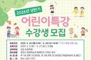 미담타임스 김준완 기자 | 영천시 평생학습관(관장 정경자)은 관내 초등학생을 대상으로 ‘2026년 상반기 어린이특강’ 수강생을 20일부터 선착순으로 모집한다. 이번 특강은 아이들이 체험활동을 통해 자연스럽게 배우고 성장할 수 있도록, 신체 활동부터 예술·탐구 활동까지 총 11개의 다양한 프로그램으로 마련됐다. 오는 5월 2일부터 6월 27일까지 2개월간 운영되며, 수강 신청은 평생학습관 누리집에서 가능하다. 수강료는 주 1회 과목 1만원, 주 2회 과목 2만원으로 재료비는 별도다. 평생학습관 관계자는 “아이들이 특강을 통해 다양한 경험을 해보며 세상에 대한 호기심과 자신감을 키워나가길 바란다”며, “앞으로도 아이들의 눈높이에 맞는 다양한 프로그램을 지속적으로 마련해 나가겠다”고 전했다. 한편, 어린이특강에 대한 자세한 사항은 영천시 평생학습관 누리집을 참고하거나, 평생학습관 교육운영팀으로 문의하면 안내받을 수 있다.