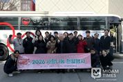 미담타임스 김교환 기자 | (재)부산문화회관(대표이사 차재근)은 2월 12일(목) 오전 9시 30분부터 부산문화회관 다듬채 앞에서 노사 합동으로 '2026 사랑나눔 헌혈행사'를 진행했다. 이번 행사는 “노사가 함께하는 작은 실천, 생명을 살리는 큰 나눔”이라는 취지 아래, 안정적인 혈액 수급에 기여하고 생명 나눔 문화 확산에 동참하기 위해 마련됐다. 임직원들은 자발적으로 헌혈에 참여하며 지역사회 공익 실천의 의미를 더했다. 특히 (재)부산문화회관의 노사 합동 헌혈행사는 2020년부터 시작해 이번 행사를 포함하여 총 8회 진행됐으며, 노사가 함께 실천하는 지속적인 사회공헌 활동으로 자리매김하고 있다. (재)부산문화회관은 앞으로도 노사가 함께하는 상생·협력 문화를 바탕으로, 시민과 함께하는 사회공헌 활동을 지속적으로 추진해 나갈 계획이다.