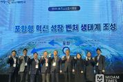 미담타임스 김준완 기자 | 포항시는 25일 라한호텔에서 ‘2025 비즈니스도시 포럼’을 개최하고 미래 신산업 중심 도시로의 대전환 의지를 다졌다. 포항시가 주최하고 경북일보 주관하는 이번 포럼은 장상길 포항시 부시장, 이재진 포항시의회 부의장을 비롯한 지역 내 벤처·스타트업 기업인, 종사자, 대학생 등 150여 명이 참석한 가운데 ‘포항형 혁신 성장 벤처생태계 구축’을 주제로 열렸다. 기존 철강 중심의 단일 산업구조에서 바이오·배터리·수소·AI 등 신산업으로의 전환을 통한 글로벌 경쟁력 강화 전략을 집중 논의했으며, 포항시는 미래 전략산업을 성장 기반으로 육성하는 동시에, 이를 지속 뒷받침할 지역 벤처·스타트업 생태계 조성이 지역 경쟁력의 핵심이라고 설명했다. 포럼은 정태옥 경북대 데이터사이언스대학원장의 ‘포항형 스타트업, AI 혁명과 창업’ 기조강연으로 막을 열었다. 이어 진행된 컨퍼런스 세션에서는 ▲최지영 코리아스타트업 상임이사 ▲장남준 한국벤처투자 실장 ▲홍병희 그래핀스퀘어 대표가 벤처·스타트업 생태계 현황을 주제로 발표했다. 두 번째 세션에서는 ▲손민호 인라이트벤처스 대표 ▲김민주 와이앤