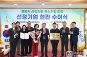 미담타임스 김준완 기자 | 포항시는 근로환경 개선과 안전한 일터 조성을 위해 추진한 ‘포항시 산업안전 우수기업 인증제’ 사업의 첫 주인공으로 ‘지구환경측정(주)’을 선정하고 3일 인증기업 현판 수여식을 가졌다. ‘산업안전 우수기업 인증제’는 지역 내 50인 미만 사업장을 대상으로 근로복지 및 안전관리 상태가 우수한 모범 기업을 발굴해 인증 및 인센티브를 지원하는 사업이다. 근로자를 위한 복리후생, 고용안정성 및 안전보건관리 분야 등 엄격한 서류심사와 현장실사를 거쳐 최종 선정된다. 제1호 인증 기업으로 선정된 지구환경측정(주)은 복지·고용·안전 등 전 분야에서 우수한 성적을 거뒀다. 특히 자유로운 육아휴직 분위기 조성, 가족 참여 체험 프로그램 운영 등 다양한 복지정책을 추진해 왔으며, 철저한 안전보건 관리 체계로 ‘산업재해율 제로’를 달성하는 등 지역을 대표하는 산업안전 우수기업으로 평가받았다. 인증 기업에는 인증 현판이 수여되며 효력은 향후 2년간 유지된다. 이와 함께 ▲모범근로자 산업연수 우선 선발 ▲고용노동부 정기근로감독 면제 추천 등 기업 운영에 실질적인 도움이 되는 혜택이 주어진다.