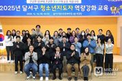 미담타임스 김교환 기자 | 대구 달서구는 지난 18일, 달서구청소년문화의집 대강당에서 관내 청소년시설 종사자를 대상으로 '2025년 청소년지도자 역량강화 교육'을 성황리에 개최했다. 이번 교육에는 청소년수련관, 청소년문화의집, 청소년쉼터, 청소년상담복지센터, 성서청소년상담복지센터, 학교밖청소년지원센터 등 관내 6개 청소년시설에서 근무하는 청소년지도자들이 참여해 전문성 강화와 재충전의 시간을 가졌다. 달서구는 변화하는 청소년 정책 환경에 선제적으로 대응하고, 현장에서 발생하는 다양한 사례에 효과적으로 대응할 수 있도록 지도자의 전문 역량을 높이는 데 이번 교육의 목적을 두었다. 특히 청소년 지도의 사명감을 되새기는 동시에 지도자 개인의 심신 건강을 돌봄으로써 청소년 활동의 질적 수준을 높이고자 했다. 이날 교육은 지도자들의 재충전과 활력 증진에 초점을 맞춘 프로그램으로 구성됐다. 허세호 달서구청소년상담복지센터 센터장이 ‘자발적 스트레스 해소’를 주제로 특별 강연을 진행해, 현장에서 겪는 정서적 부담을 건강하게 관리하는 실질적인 방법을 공유하며 큰 공감을 얻었다. 이어 진행된