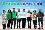 미담타임스 김준완 기자 | 충남도가 농촌폐기물 수거체계 개선에 앞장서 온 우수마을을 표창하고, 그동안 추진한 사업의 성과를 공유하는 자리를 마련했다. 도는 16일 홍성문화원에서 박정주 도 행정부지사를 비롯해 송근선 한국환경공단 충청권본부 자원순환관리처장, 정해웅 농협중앙회 충남세종본부장, 이민수 한국농어촌공사 충남본부장, 성낙구 도 새마을회장, 시군 관계자 등 200여 명이 참석한 가운데, ‘2025년 농촌폐기물 수거 경진대회 시상식’을 개최했다. 도와 한국환경공단, 농협중앙회, 한국농어촌공사가 공동주최한 이날 행사는 △폐기물관리 유공자 표창 △우수마을 시상 △농촌폐기물 관리 레크리에이션 순으로 진행됐다. 심사는 지난해 11월부터 올해 10월까지 수거 실적(계량)과 수거 노력(비계량) 등을 종합해 기후에너지환경부 장관상 1곳, 한국환경공단 이사장상 4곳, 농협중앙회장상 10곳, 한국농어촌공사 사장상 3곳 등 총 18개 마을을 선정했다. 특별상인 한국농어촌공사 사장상은 폐비닐 발생량이 적은 소규모 마을에도 동기를 부여하기 위해 전년 대비 향상도가 높은 마을을 선정해 시상했다. 영예의