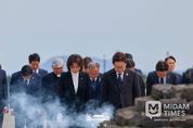 미담타임스 공한별 기자 | 이재명 대통령과 김혜경 여사는29일 오전, 제주 4·3 평화공원을 찾아 영령들께 참배하고 유족들과 함께하는 시간을 가졌다. 이번 방문은 국가기념일인 ‘제주 4·3 희생자 추념일’을 앞두고 이루어진 것으로, 이 대통령 내외는 헌화와 분향을 통해 희생자들의 넋을 기렸다. 이어 이 대통령 내외는 희생자 15,126위의 위패가 모셔진 ‘위패봉안실’과 4·3 당시 행방불명되어 시신조차 찾지 못한 희생자들의 표석이 설치된 ‘행방불명인 표석’을 찾아 희생자들을 추모했다. 이 대통령은 위패봉안실에서 나와 방명록에 ‘제주 4·3을 기억하며 국가폭력의 재발을 막기 위해, 민형사 시효제도를 폐기하겠습니다.“라고 남겼다. 이 대통령이 방명록을 작성하는 모습을 지켜보던 임문철 제주4·3평화재단 이사장을 비롯한 관계자들은 문구를 보고 박수로 호응했다. 참배 이후 이 대통령 내외는 제주 4·3 희생자 유족들과 오찬을 함께하며 아픔을 나누고 위로하는 시간을 가졌다. 오찬 간담회에는 윤호중 행정안전부 장관과 오영훈 제주도지사, 김한규·문대림·위성곤 국회의원을 비롯해