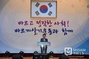 미담타임스 정인화 기자 | 바르게살기운동 부여군협의회(회장 이돈영)가 지난 14일 부여군유스호스텔 실내체육관에서‘2025년 바르게살기운동 한마음 다짐 대회’를 개최했다. 행사에는 박정현 부여군수, 김영춘 부여군의회 의장 등 관내 주요 기관·단체장과 바르게살기 회원 400여 명이 참석해 성황을 이뤘다. 1부 의식행사는 바르게살기운동 유공자 표창 수여를 비롯해 이돈영 회장의 대회사, 박정현 군수와 김영춘 의장의 축사, 차호열 바르게살기운동 충청남도협의회장의 격려사, 바르게살기운동 결의문 낭독 순으로 진행됐다. 2부 회원 화합 한마당은 전 회원의 단결과 화합을 도모하기 위한 시간으로, 16개 읍·면 위원회별 노래자랑과 행운권 추첨 등 회원들이 함께 즐기고 마음을 나눌 수 있는 자리가 됐다. 이돈영 회장은 대회사를 통해“각 지역에서 의식 개혁운동을 통해 더불어 사는 세상, 따뜻한 지역사회 만들기에 앞장서 있는 회원 한 분 한 분이 진정한 위인이자 바르게살기운동의 희망”이라며, “앞으로도 더불어 사는 지역사회를 만드는 데에 힘을 보태주시길 바란다.”라고 전했다. 이에 박정현 부여군수는 “항상 이