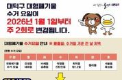 미담타임스 김준완 기자 | 대전 대덕구는 주민 생활편의를 높이고 불법투기를 예방하기 위해 2026년 1월부터 대형폐기물 수거일을 동별 주 2회로 확대 운영한다. 그동안 대덕구는 대형폐기물을 주 1회 수거해 왔으나, 배출 시기와 수거 일정이 맞지 않아 주민 불편이 이어져 왔다. 이에 구는 주민 의견과 현장 여건을 반영해 모든 동을 대상으로 주 2회 수거 체계로 전환하기로 했다. 수거는 월요일부터 토요일까지 평일 기준으로 운영되며, 동별 수거 요일은 대덕구 누리집과 행정복지센터 게시판, 안내 현수막 등을 통해 사전에 안내된다. 신청 방법은 기존과 동일하게 인터넷 배출신고(대덕구 홈페이지) 또는 전화 접수를 통해 가능하며, 대덕구 자원순환센터가 수거를 담당한다. 수거 대상은 가구, 가전제품, 이불 등 종량제 봉투로 배출이 어려운 대형 폐기물로, 신고 후 스티커를 부착하면 된다. 대덕구는 이번 수거 주기 확대를 통해 장기간 배출 대기 문제를 해소하고 무단투기와 방치 사례가 크게 줄어들 것으로 기대하고 있다. 최충규 대덕구청장은 “주민이 체감하는 생활환경 개선이 무엇보다