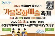 미담타임스 김교환 기자 | 부산광역시교육청 유아교육진흥원은 오는 11월 8일 오전 10시부터 오후 3시까지 학생교육문화회관에서 부산 시내 3~5세 유아와 동반 가족 3,000여 명을 대상으로 ‘예술UP! 감성UP! 가을문화예술축제’를 개최한다. 이번 축제는 가을의 정취 속에서 공연과 체험, 자연이 어우러진 다채로운 프로그램을 통해 유아와 가족이 함께 즐기며 따뜻한 추억을 쌓을 수 있도록 마련했다. 축제는 총 4개 마당으로 구성했다. 공연마당에서는 동요와 함께하는 현악 클래식 연주, 미술 기법을 활용한 드로잉 공연 등 눈과 귀를 사로잡는 무대가 펼쳐지고, 예술창의마당에서는 자개 열쇠고리 만들기, 컵 받침 만들기, 만화경 만들기 등 예술과 과학이 결합된 체험을 통해 유아의 상상력과 창의성을 키운다. 자연마당에서는 가을 북 피크닉과 중고도서 나눔 행사가 열려 책과 자연이 어우러진 여유로운 시간을 제공하며, 어울림마당에서는 에어바운스, 전통·다문화 놀이, 먹거리 나눔 등 온 가족이 함께 참여하고 소통하는 체험형 프로그램이 운영된다. 공연 관람은 사전 신청제로 진행한다. 10월 29일 오전 9시부터 11월 6일 오후 3