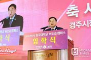 미담타임스 김준완 기자 | 주낙영 경주시장이 동국대학교 WISE캠퍼스 입학식에 참석해 신입생들의 힘찬 출발을 응원했다. 경주시는 주낙영 시장이 지난 20일 동국대학교 WISE캠퍼스 입학식에 참석해 신입생들을 격려했다고 22일 밝혔다. 이날 입학식에는 돈관 스님과 윤재웅 동국대 서울캠퍼스 총장, 류완하 WISE캠퍼스 총장을 비롯해 총동창회 관계자, 신입생·학부모 등 2,000여 명이 참석했다. 행사는 개식 선언과 국민의례를 시작으로 입학 허가 선언 및 장학증서 수여, 총장 식사, 이사장 치사, 내빈 축사, 홍보영상 상영, 교가 제창 등의 순으로 진행됐다. 주낙영 시장은 축사에서 “오늘 여러분은 120년의 역사를 지닌 동국대학교의 새 가족이 됐으며, 동시에 신라 천년의 숨결이 살아 숨 쉬는 경주의 새로운 가족이 됐다”고 말했다. 이어 “경주는 전통 위에 새로운 미래를 만들어가는 도시”라며 “SMR 국가산업단지 조성과 e-모빌리티 산업 등 첨단 산업 기반을 확충하고, 관광·문화·국제회의 도시 기반을 강화해 세계와 연결되는 미래 경쟁력을 더해가고 있다”고 강조했다. 또 “대학 생활