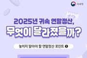 미담타임스 조혜리 기자 | ■ 2025년 연말정산 혜택 종합안내 · 국세청이 2025년 귀속 연말정산부터 새롭게 적용되는 공제·감면 사항에 대해 미리 알려드립니다! - 2025년 귀속 연말정산 일정 *카드 이미지 참조 - 홈택스 「간소화서비스」 개통 2026.1.15.(목) · 교육비 등 공제·감면에 필요한 소득·세액공제 자료 45종을 손쉽게 확인 가능 · 발달재활 서비스 이용증명서, 수영장·체력단련장 신용카드 등 사용(7.1. 이후)이용료 최초 제공 ■ 자녀·가족 공제, 이렇게 바뀌었습니다! · 자녀세액공제 상향 - 8세 이상 20세 이하 기본공제 대상 자녀 수에 따른 자녀세액공제 금액 10만 원 상향 *자녀 1명(25만 원), 2명(55만 원), 3명(95만 원), 4명(135만 원) 등 · 발달재활아동 장애 증빙 인정범위 확대 - 발달재활서비스 이용증명서 만으로 장애인 추가공제(200만 원) 가능 *발달재활서비스를 지원받는 아동이 9세 미만 · 중소기업 취업자 감면 합리화 - '25.3.14. 이후 중소기업 재취직한 남성 근로자도 취업일로부터 3년간 소득세의 70% 감면 &nbs