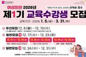 미담타임스 김교환 기자 | 부산시 여성회관은 내일(8일)부터 '2026년 제1기 교육과정' 수강생을 모집한다고 밝혔다. 이번 교육과정은 시민들의 취업, 창업 등 경제활동 참여와 직장인 등의 능력 개발을 위해 오는 1월 5일부터 3월 31일까지 약 3개월간 진행된다. ▲공예 ▲미용 ▲요리 ▲커피 ▲제과제빵 ▲봉제 ▲외국어 ▲컴퓨터 ▲노인 교구 등 9개 분야 91개 과목에서 1천7백여 명의 수강생을 모집하며 교육 일은 과목별 사정에 따라 조정될 수 있다. 특히, 취·창업 등에 도움이 되는 자격증 강좌, 기능 생활 교양 강좌와 함께 직장인 등을 위한 야간·주말 강좌도 운영될 예정이다. 자격증 강좌로는 ▲조리기능사(한식/중식) ▲미용사(메이크업/네일/일반) ▲정보기술자격시험(ITQ엑셀) ▲기초토익 ▲화훼장식기능사 등이 마련됐다. 야간 강좌로 ▲커피 바리스타 2급 ▲외국어(영어, 일본어, 중국어) 등과 주말 강좌로 ▲가족 홈베이킹 ▲옷 만들기 ▲캘리그래피 등도 만나볼 수 있다. 강좌에 관심 있는 18세 이상 시민이라면 누구나 수강할 수 있다. 수강 신청은 우선 모집, 일반 모집, 추