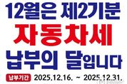 미담타임스 김준완 기자 | 안동시는 2025년도 제2기분 자동차세 40,428건, 62억 7천만 원을 부과하고 고지서를 발송했다고 12월 18일(목) 밝혔다. 12월 1일 현재 자동차등록원부상 소유자에게 부과된 이번 자동차세의 납부 기간은 12월 16일부터 12월 31일까지며, 연납신청으로 자동차세를 이미 납부한 차량 및 6월에 납부한 연세액 10만 원 이하인 차량은 이번 부과대상에서 제외된다. 하반기 중 신차를 구입하거나 중고차를 이전받아 등록한 경우에는, 취득일부터 12월 말까지 소유한 기간에 대해 일할 계산된 금액을 납부하면 된다. 자동차세 연납은 매년 1․3․6․9월에 신청할 수 있으며, 1월 중에 신청할 경우 4.58%의 공제를 받을 수 있고, 신청은 안동시청 세정과 및 읍면동 행정복지센터 방문 또는 전화, 위택스로 가능하다. 자동차세는 고지서에 기재된 지방세입 계좌를 통해 전국 모든 금융기관에서 이체 수수료 없이 납부할 수 있고, 지로 및 현금인출기 납부, 위택스 등을 통한 전자납부도 가능하다. 안동시 관계자는 “우편으로 발송된 고지서를 반드시 확인하시고 가산금, 차량 압류 등의 불이익이