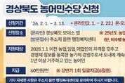 미담타임스 김준완 기자 | 성주군은 농어업·농어촌의 공익적 가치를 보전하고 농어민의 소득 안정을 도모하기 위해 2026년도 농어민수당 신청 접수를 실시한다. 이번 농어민수당 신청은 2026년 2월 1일부터 3월 13일까지 진행되며, 온라인과 오프라인 방식으로 병행 접수한다. 온라인 신청은 2월 1일부터 2월 22일까지 경상북도 공공서비스 플랫폼인 ‘모이소(Moiso)’ 앱을 통해 가능하며, 방문 신청은 2월 23일부터 3월 13일까지 주소지 읍·면 행정복지센터에서 접수할 수 있다. 신청자는 신청 기간 내 편리한 방법을 선택하여 신청하면 된다. 신청 대상은 2024. 12. 31일까지 농어업경영체 등록을 마치고 같은 날(2024. 12. 31.)까지 경북도 내에 주민등록을 두고 신청일 기준 1년 이상 계속 거주하면서 실제로 농업·임업·어업에 종사하는 경영주이다. 다만, 농어업 외 소득이 일정 기준을 초과하거나 보조금 부정 수급 이력이 있는 경우 등은 관련 규정에 따라 지급 대상에서 제외될 수 있다. 경상북도 농어민수당은 농가당 연 60만 원이 지급되며, 자격 요건 검증과