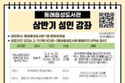 미담타임스 김교환 기자 | 부산 동래구는 오는 2월 19일부터 동래읍성도서관과 안락누리도서관에서 지역 주민을 대상으로‘2026년 상반기 성인 강좌’수강생을 모집한다고 밝혔다. 이번 상반기 성인 강좌는 3월부터 5월까지 운영될 예정이며, 동래읍성도서관에서는 △[독서문화강좌] 문학으로 읽는 한국의 역사 △[평생학습센터 강좌] 영국 인문학을 운영하고, 안락누리도서관에서는 △[독서문화강좌] 그림책을 통한 마음 챙김 △[평생학습센터 강좌] 일상을 담는 수채화 일러스트를 진행한다. 신청은 2월 19일 오전 10시부터 동래읍성도서관과 안락누리도서관 누리집을 통해 선착순으로 가능하다. 강좌별 신청 시작일과 운영 기간이 다르므로, 자세한 사항은 각 도서관 누리집을 참고하거나 동래읍성도서관과 안락누리도서관으로 문의하면 된다. 동래구 관계자는“지역 주민들이 배움의 즐거움을 느끼고 인문학적 소양을 넓힐 수 있도록 다양한 프로그램을 준비했으니 많은 관심과 참여를 바란다”라고 말했다.