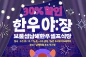 미담타임스 김교환 기자 | 남해군은 연말을 맞아 오는 12월 17일부터 20일까지 4일간, 매일 오후 5시부터 9시까지 남해축협 본소 주차장에서 ‘한우야:장(보물섬남해한우 셀프식당)’을 운영한다고 밝혔다. 이번 행사는 얼마 전 군민과 상인들의 뜨거운 호응 속에 마무리된 ‘남해의 맛 – 화전야:장(花田夜:場)’의 열기를 이어받아 군민들에게 겨울밤, 야외 테이블에서 프리미엄 한우 코스를 즐길 수 있는 특별한 경험을 제공하기 위해 마련됐다. 행사 기간 동안 마트에서 100g당 17,000원~13,100원에 판매되는 1++, 1+ 등급 보물섬남해한우(등심, 안심 및 특수부위)를 30% 할인된 가격으로 현장에서 구워 먹을 수 있다. 한편, 예로부터 우리 민족은 겨울철에 쇠고기를 즐겨 먹었는데 음력 10월이면 숯불을 지핀 화로에 번철을 놓고 양념한 쇠고기와 여러 재료를 함께 구워 둘러앉아 나누던 풍속인 난로회(煖爐會)가 있었으며, '열하일기'를 집필한 연암 박지원은 “겨울철 눈 오는 날, 친구를 불러 고기를 구워 먹으니 신선이 사는 곳이 부럽지 않다”고 기록했다.