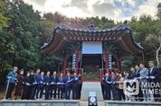 미담타임스 김교환 기자 | 연제구는 10월 23일 배산 전통정자 건립을 기념하는 배산 전통정자 ‘도화정’ 제막식을 개최했다. 이번 제막식은 배산의 자연경관과 지역 전통문화를 접목한 휴식 공간인 ‘도화정’의 완공을 기념하기 위한 자리로 마련됐다. 개회 및 내빈소개, 기념사 및 축사, 제막식, 기념촬영 순으로 진행됐으며, 주석수 연제구청장을 비롯해 구의장, 시·구의원, 주민 대표 등 70여 명이 참석해 자리를 빛냈다. ‘도화정(桃花亭)’은 연제구청 개청 30주년을 기념하고 연제구의 역사 이야기를 발굴하기 위한 배산 역사길 조성사업의 일환으로 건립됐다. 도화 낭자와 탈해장군(신라4대왕)의 이루지 못한 사랑 이야기를 주련에 담았으며, 배산의 맑은 자연 속에서 지역주민들이 전통적인 미과 여유를 즐길 수 있도록 전통적 구조로 건립됐다. 주석수 연제구청장은 “도화정은 배산의 아름다운 자연경관과 어우러져 지역주민들이 사랑하는 명소가 될 것”이라며, “앞으로도 지역의 역사와 문화를 담은 공간을 지속적으로 확충해 나가겠다”라고 말했다.