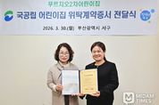 미담타임스 남혜영 기자 | 부산 서구는 지난 3월 30일 서대신1동 소재 국공립 푸르지오2차어린이집의 안정적인 운영을 위해 선정된 위탁운영자와 위탁계약을 체결하고 위탁증서를 전달했다. 이번 계약은 공정한 심사 과정을 거쳐 전문성과 책임감을 갖춘 위탁운영자를 선정하여 진행됐으며, 선정된 위탁운영자는 향후 5년간 어린이집 운영 및 시설 관리 전반을 책임지게 된다. 서구는 이번 계약을 통해 어린이집 운영의 효율성을 높이고, 부모가 안심하고 아이를 맡길 수 있는 투명하고 안전한 보육 환경을 조성할 계획이다.