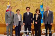 미담타임스 공한별 기자 | 이재명 대통령은 4월 2일 오후 청와대에서 진 섀힌(Jeanne Shaheen) 상원 외교위원회 간사 등 공화·민주 양당 의원으로 구성된 미국 상원의원 대표단을 접견했다. 이 대통령과 미 대표단은 한미동맹 및 한반도 문제를 비롯해 중동 전쟁의 안보적·경제적 파장과 대응 방안에 대해 심도 있는 의견을 교환하고, 향후 경제적 여파 대응 과정에서 한미가 긴밀히 소통해 나가는 것이 중요하다는 점에 뜻을 같이 했다. 이 대통령은 지난 70여 년간 발전을 거듭한 한미동맹이 안보와 경제를 넘어 첨단기술과 전략산업 등을 아우르는 ‘미래형 포괄적 전략동맹’으로 발전한 점을 높이 평가했다. 또한 올해는 대미 투자 패키지를 포함해, 원자력의 평화적 이용, 핵추진잠수함, 조선 등 지난해 양국 정상 간 합의한 핵심적인 분야에서 구체적인 협력을 진전시켜 나갈 수 있도록 미국 상원이 적극적으로 지지해줄 것을 당부했다. 미 대표단도 최근 중동전쟁 등 국제정세가 불안정한 상황에서도 한미동맹에 대한 지지와 미국의 굳건한 한반도 안보 공약에는 변함이 없을 것임을 재확인했다. 이 대통령이 한반도 비핵화와 평화·안정을 위한 우리 정부