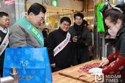 미담타임스 김준완 기자 | 주낙영 경주시장이 설 명절을 앞두고 전통시장을 연이어 찾으며 민생경제 살리기에 나섰다. 경주시는 주낙영 시장이 지난 10일 성동시장에서 설 명절맞이 전통시장 장보기 행사를 진행한 데 이어, 11일 오전에는 중앙시장을 찾아 설맞이 장보기 행사를 이어갔다고 밝혔다. 이번 행사는 설 명절을 앞두고 위축된 소비심리를 회복하고 지역 상권에 활력을 불어넣기 위해 경주시가 마련한 민생경제 지원의 일환이다. 경주시는 전통시장 현장 장보기를 통해 상인들을 격려하고 시민들의 전통시장 이용을 유도한다는 계획이다. 주 시장은 중앙시장 북편 상설무대 앞에서 인사말과 기념촬영을 한 뒤 시장 곳곳을 돌며 식료품점과 청과상, 건어물점, 잡화점 등에서 설 성수품을 직접 구매했다. 이 과정에서 상인들의 애로사항을 청취하고 물가 동향을 점검하며 현장 목소리를 시정에 반영하겠다는 뜻을 밝혔다. 이날 중앙시장 장보기 과정에서는 상인과의 자연스러운 교류도 이어졌다. 주낙영 시장이 중앙시장 내 성광식육점에서 소고기를 구매하자, 김복식 대표가 “전통시장이 살아야 우리도 산다”며 상인의 정을
