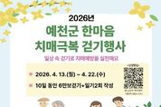 미담타임스 김준완 기자 | 예천군은 오는 13일부터 22일까지 치매 예방에 효과적인 걷기 실천을 장려하고 지역 주민의 건강한 생활 습관 형성을 위해'2026년 한마음 치매극복 걷기 행사'를 비대면 방식으로 운영한다. ‘경상북도 한마음 치매극복 걷기 행사’의 일환으로 추진되는 이번 행사는 시간과 장소의 제약 없이 참여할 수 있도록 스마트폰을 활용한 비대면 걷기 챌린지 방식으로 운영해, 지역 주민의 자발적인 건강관리 참여를 유도하는 데 목적이 있다. 참여 대상은 치매 예방 관리가 필요해 모바일 치매예방 플랫폼 ‘인지케어 앱’을 설치한 60세 이상 주민이다. 챌린지는 앱을 통해 참여할 수 있으며, 10일간 총 6만 보 걷기와 일기 2회 작성을 목표로 일일 최대 1만 보까지 인정된다. 챌린지 성공 시 예천사랑상품권 1만 원권(지류)을 지급할 예정이며 달성자가 150명 이상일 경우, 추첨을 통해 지급된다. 특히 이번 행사는 올해 신규 치매예방사업인 ‘스마트 기억놀이터’와 연계해 운영되며, 걷기 활동과 인지 자극 활동을 병행함으로써 치매 예방 효과를 높일 방침이다. 임미란 보건소장은