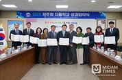 미담타임스 박민정 기자 | 제주특별자치도교육청은 24일 도교육청 상황실에서 2026학년도 신규 지정 제주형 자율학교 10개교(초 10개교)와 성과 협약을 체결했다. 제주형 자율학교는‘제주특별자치도 설치 및 국제자유도시 조성을 위한 특별법’제216조에 근거하여 교육과정을 자율화·다양화·특성화하고 학교와 지역의 특색을 반영한 창의적 교육과정을 운영하는 학교다. 이번 신규 지정을 포함해 도내에서는 총 15개 유형, 101개 학교가 운영되어 공교육의 혁신을 이끌고 있다. 이번 협약식에서 김광수 교육감과 각 학교장은 △협약 당사자의 기본 책무 △성과 목표 및 지표 설정 △성과 평가 및 결과 활용 등에 서명하며 자율학교 운영의 책임성과 내실화를 약속했다. 도교육청 관계자는 “이번 성과 협약 체결로 제주형 자율학교의 자율적이고 책임 있는 운영이 강화되어 제주 공교육의 수준이 한 단계 더 도약할 것으로 기대한다”며 “앞으로도 현장 중심 지원을 아끼지 않겠다”고 말했다.