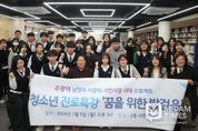 미담타임스 정주환 기자 | 남양주시는 5일 진접고등학교에서 1·2학년 학생 임원 40명을 대상으로 진로특강을 진행했다고 밝혔다. 이번 특강은 다산 정약용 선생의 삶과 정신을 바탕으로 청소년이 삶의 방향과 태도에 대해 성찰하고, 진로와 꿈의 의미를 다시 생각해보는 계기를 제공하기 위해 마련됐다. 이날 강연자로 나선 주광덕 시장은 스스로를 존중하는 마음이 진로를 고민하는 데 있어 중요한 출발점이라고 강조했다. 종교와 시대를 넘어 전해지는 인간 존엄의 메시지를 사례로 들며, 자신에 대한 믿음과 자존감을 키워가는 과정의 중요성을 전달했다. 이어 주 시장은 평생 배움과 기록을 실천한 정약용 선생의 삶을 소개했다. 정약용 선생처럼 꾸준히 사색하고 기록하는 습관이 개인의 성장과 꿈의 실현으로 이어질 수 있다는 점을 강조하며, 기록을 통해 생각을 정리하고 어려움을 극복한 사례는 오늘날에도 시사하는 바가 크다고 전했다. 주 시장은 “온 우주에서 가장 가치 있고 존귀한 존재라는 자부심을 바탕으로, 각자가 자신의 꿈을 돌아보고 내면의 목소리에 귀 기울이길 바란다”며 “정약용 선생의 가르침처럼 기록을 멈추지 않는 자세가