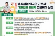 미담타임스 조혜리 기자 | 음식점업 외국인 근로자 '26년도 2회차 고용허가 신청 ■ 신청기간: 2026.4.20.(월)~5.6.(수) ■ 신청 요건 · 업종 한식 음식점업(한국표준산업분류 상 5611), 외국식 음식점업(5612) *고용보험 시스템에 등록된 업종 기준(실제 영업을 영위하는지 여부 등은 '사업자등록증' 또는 '영업신고증'으로 증빙) *기관구내식, 출장이동식, 기타간이, 주점, 비알코올 음료점은 미허용 · 업력 고용허가서 신청일 기준으로 한식·외국식 음식점업으로 연속하여 5년 이상 영업 유지(휴업 기간 포함) *부가가치세 과세표준증명원상 과세기간 또는 사업자등록증상 '개업년·월·일'로 확인 · 고용인원 내국인 근로자 1인 이상 5인 미만 사업장은 1명, 5인 이상 사업장은 2명까지 가능 *내국인근로자(피보험자) 수는 고용부에서 고용보험시스템 전산 확인 · 직무 주방보조원(한국표준직업분류 상 95220) 및 음식 서비스 종사원(45311) *현장 여건에 맞게 직무범위 탄력적 운영 가능 · 문의 - 고용노동부 상담센터 ☎1350 · 신청 - 사업장 관