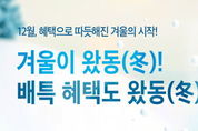 미담타임스 정주환 기자 | 경기도와 경기도주식회사가 공동 운영하는 경기도 공공배달앱 배달특급이 겨울을 맞아 12월 한 달간 ‘겨울이왔동(冬)’ 소비자 할인 프로모션을 진행한다. ‘겨울이왔동(冬)’ 소비자 할인 이벤트는 ‘통 큰 세일’ 프로모션 종료 등으로 아쉬움이 남는 소비자들의 편익을 증대하기 위해 마련했다. 배달 특급 전체 회원, 전체 서비스 지역을 대상으로 1만2천원 주문에 사용가능한 3천원 할인 쿠폰을 예산 소진시까지 1일 1인 1회 지급한다. 한편 배달특급의 모든 이벤트는 해당 상단 배너 기능을 통해 확인 가능하며, 지역에 따라 할인 조건과 금액이 달라질 수 있어 사전 확인이 필요하다.
