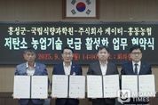 미담타임스 정인화 기자 | 홍성군은 29일, 국립식량과학원, KT(케이티), 홍동농협과 함께 저탄소 농업기술 보급 활성화를 위한 4자간 업무협약(MOU)을 체결했다고 밝혔다. 군청 회의실에서 열린 협약식에는 이용록 홍성군수, 주정산 홍동농협 조합장, 국립식량과학원 곽도연 원장, KT 충남·충북고객본부 송영태 본부장 등 19명이 참석했다. 이번 협약에 따라 홍성군은 국립식량과학원이 개발한 저탄소 농업기술의 보급과 현장 지도를 담당하고, KT는 계측 데이터의 안정적 운영을 위한 통신 인프라를 지원하며, 홍동농협은 작목반 교육과 생산 관리 등 현장 적용에 중점을 두게 된다. 현재 저탄소 농산물 인증을 위해 필요한 ‘논물 관리’의 증빙은 농민이 수위를 직접 촬영해 업로드해야 해 고령농가의 참여에 어려움이 있었고, 증빙의 정확성도 낮다는 지적이 있었다. 이에 홍성군은 지난 6월 국립식량과학원·홍동농협과 협력해 홍동면 17개 대표 필지에 논물 계측기를 설치하고 현장 실증을 추진해왔으며, 이번 협약은 이러한 노력을 기반으로 저탄소 농업기술의 지속적 확산을 위해 마련됐다. 이용록 홍성군수는 “이번 협