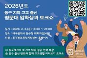 미담타임스 김교환 기자 | 대구 동구청은 오는 6일 오후 6시 30분, 동구청 4층 대회의실에서 관내 학생 및 학부모를 대상으로 ‘2026 내 자녀 대입 성공 전략 특강 및 멘토와 함께 고교생활 미리보기 토크쇼’를 개최한다. 이번 행사는 변화하는 대학 입시 환경을 미리 이해하고, 자신의 진로와 학습 방향을 주도적으로 설계할 수 있도록 지원하기 위해 마련됐으며, 특히 최신 대입 제도와 고교 생활 전반에 대한 이해를 높이는 실질적인 정보를 제공하는 데 중점을 뒀다. 1부 특강에서는 동구진로진학지원센터장이 강연자로 나서, 최근 대입 제도의 주요 변화와 함께 학생 수준과 성향에 맞는 학습 전략, 진로 설계 방법 등을 강연한다. 이어지는 2부 토크쇼에서는 동구 지역 출신 예비 대학생 멘토 5명이 참여해 고등학교 시절의 학습 경험, 입시 준비 과정 등을 솔직하게 공유하며, 학생들이 궁금해하는 고교생활 전반에 대해 자유로운 소통의 시간을 갖는다. 윤석준 동구청장은 “입시는 학생 개개인의 적성과 방향을 함께 고민하는 과정”이라며, “이번 행사가 학생들에게 진로를 구체화하는 실질적인 길잡이가 되기를 기대한다. 동구