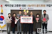 미담타임스 김준완 기자 | 영양군은 지난 3월 12일 군청 소회의실에서 경북사회복지공동모금회와 함께 케이건설 고종환 대표의 ‘나눔리더 골드회원’ 가입식을 가졌다. 이번 가입식은 지역 내 나눔 문화를 선도하고 소외된 이웃에게 희망을 전달하기 위해 마련되었으며, 이날 행사에는 손병일 경북 사랑의열매 사무처장, 이인형 영양군 나눔봉사단장 등이 참석하여 고종환 대표의 나눔리더 골드회원 가입을 함께 축하했다. 나눔리더는 지역사회의 나눔문화 확산을 위해 경북 사랑의열매가 운영하는 개인기부자 프로그램으로, 100만 원 이상을 기부했거나 1년 이내 납부를 약정한 개인 기부자가 참여할 수 있으며, 나눔리더 회원 가운데 기부금이 500만 원 이상인 경우 실버등급, 1천만 원 이상인 경우 골드 등급으로 예우하고 있다. 케이건설 고종환 대표는 2024년 결혼 33주년을 맞아 333만 3천 원을 기부하며 지역사회 나눔에 동참했으며, 이후 매년 결혼기념일마다 1천 원씩 증액해 기부를 이어오고 있다. 이번 나눔리더 골드회원 가입을 통해 지역사회 어려운 이웃을 위한 나눔 실천을 지속해 나갈 예정이다. 고종환 대표는 “우리 가족