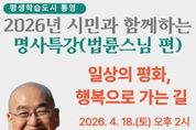 미담타임스 황명수 기자 | 통영시는 오는 4월 18일 오후 2시, 통영시민문화회관 대극장에서 '평생학습도시 통영, 2026년 시민과 함께하는 명사초청 강연'의 두 번째 순서로 법륜스님을 초청해 명사 특강을 개최한다. 평화재단 이사장이자 정토회 지도법사인 법륜스님은 즉문즉설 형식의 강연을 통해 사람들의 다양한 고민에 대해 명쾌한 해법을 제시하며 큰 호응을 얻고 있다. 이번 강연은 ‘일상의 평화, 행복으로 가는 길’을 주제로 진행되며, 특히 법륜 스님 특유의 ‘즉문즉설(卽問卽說)’이 예정돼 있어 기대를 모으고 있다. 정해진 주제 없이 현장에서 시민들이 직접 작성한 고민과 번뇌를 ‘즉문함’에 넣으면, 스님이 이를 즉석에서 선택해 명쾌한 해답과 위로를 건네는 소통형 강연으로 꾸며질 예정이다. 특히 삶의 무게와 고통 속에서 길을 찾는 시민들에게 스님의 지혜로운 통찰이 담긴 답변이 실시간으로 전해지며 깊은 공감과 치유의 장이 될 것으로 기대된다. 참석을 희망하는 시민은 사전 신청 없이 당일 현장 방문을 통해 자유롭게 참여할 수 있다. 시 관계자는 “이번 강연이 시민들에게 마음의 여
