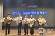 미담타임스 김교환 기자 | 부산시 농업기술센터는 국산 국화 '백강‘의 기술보급 모델을 구축한 공로를 인정받아, 어제(16일) 오후 진행된 2025년 농촌진흥청 주관 농업기술보급 혁신 우수사례 경진대회 시상식에서 '대상'을 수상했다고 밝혔다. 국화 '백강'은 국내에서 육성한 국산 품종으로, 국내 최초 흰녹병 저항성을 가진 흰색 대형 국화이다. 흰녹병 방제약제 사용량을 30퍼센트(%) 절감할 수 있으며, 꽃 수명도 일반 절화(가지째 꺾은 꽃) 국화보다 2배 정도(3~4주) 긴 편이다. 또한, 재배온도가 낮아 겨울철 난방비를 20퍼센트(%) 절감할 수 있는 품종으로, 2024~2025년 ‘기술보급 블렌딩* 협력모델사업’을 통해 확대 보급됐다. 센터는 스마트농업을 연계한 현장 중심 보급모델 우수사례로 평가받았으며, 연구와 지도, 민간의 유기적인 협력체계 구축으로 현장 중심 기술보급과 농가소득 향상을 동시에 이뤄냈다. 수입 품종 의존도가 높았던 절화(가지째 꺾은 꽃) 국화 시장에서 국산 품종의 자립 기반을 조성하고, 정보통신기술(ICT) 활용 자동 관수․관비시스템 개발과 실증 학술연구과제로 추