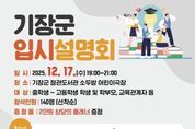 미담타임스 김교환 기자 | 기장군은 오는 17일 정관도서관 소두방 어린이극장에서 관내 수험생과 학부모를 대상으로 ‘2027학년도 대학입시 설명회’를 개최한다고 16일 밝혔다. 이번 설명회는 변화하는 대입제도 속에서 학생과 학부모가 신뢰도 높은 최신 입시 정보를 제공받을 수 있도록 지원하고, 지역 교육 경쟁력 강화를 위해 마련했다. 입시 전문 교육기관인 ㈜종로아카데미와 연계해 ‘1대1 맞춤형 진로·진학 컨설팅 지원사업’의 일환으로 진행된다. 이날 강연은 EBS 진학상담 대표 강사이자 종로학원 입시연구소 외부패널로 활동 중인 정동완 강사와 교육특구사업 자기주도 학습 센터장 황광희 강사가 강연자로 나서, ‘고교학점제!120% 제대로 활용하는 입시특강’,‘방학동안 어떻게 공부할것인가, 학습법강의’를 주제로 진행된다. 특히 최근 2028 대입개편 논의 및 수능·학생부 평가 방식 변화 등 빠르게 변화하는 교육 환경에 따라, ▲학생부 전형 대비 전략 ▲정시 학습 로드맵 ▲대학별 전형 변화 분석 ▲등급대별 맞춤 전략 ▲지역 학생이 반드시 알아야 할 최신 입시 정보 등 입시 전략 수립에 실적적으로 필요한 내용으로 구성됐다. &
