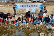 미담타임스 김준완 기자 | 경상남도 수산자원연구소 민물고기연구센터는 3월 12일 산청군 경호강에서 내수면 생태계 자원 회복과 어업인 소득 증대를 위해 은어 어린고기 6만 마리를 방류했다고 밝혔다. 이날 방류 행사에는 민물고기연구센터와 산청군 관계자, 어업인, 지역 주민, 학생 등 80여 명이 참여해 경호강 생태계 보전의 의미를 함께했다. 연구센터는 오는 3월 24일까지 산청군 경호강 6만 마리를 비롯해 하동군 섬진강 2만 마리, 밀양시 밀양강 2만 마리를 차례대로 방류할 계획이다. 은어는 ‘청류(淸流)의 귀공자’로 불릴 만큼 맑은 물에서 서식하는 대표적인 민물고기다. 어린 은어는 바다로 내려가 겨울을 보낸 뒤 봄에 다시 하천으로 돌아오는 양측회유성 어류로 알려져 있다. 다만 경호강은 바다와 직접 연결되지 않은 하천으로 자연적인 자원 증가가 어려워 인공 방류를 통한 자원 조성이 필요한 지역이다. 그럼에도 맑은 물과 자갈 바닥 등 은어 서식 환경이 우수해 ‘은어 낚시의 성지’로 불리고 있으며, 매년 여름이면 국내외 낚시꾼들이 찾는 대표적인 내수면 낚시 명소로 알려져 있다. 은어