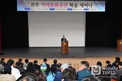 미담타임스 김교환 기자 | 진주시는 27일 진주시 전통예술회관에서 ‘진주 가야문화유산 학술세미나’를 개최했다고 밝혔다. 이번 세미나는 진주지역의 대표적인 가야 고분군인 가좌동·수정봉·원당 고분군의 조사성과를 공유하고, 그 역사·문화유산적 가치를 재조명하기 위해 마련됐다. 이날 행사는 진주시가 주최하고 극동문화재연구원이 주관해 경상남도의 ‘2025년 가야문화유산 조사연구 지원사업’의 일환으로 진행됐다. 특히 학계 전문가와 연구기관 관계자, 시민 등 100여 명이 참석해 관련 연구성과와 향후 보존·지정 방향에 대해 심도 있게 논의했다. 개회식에서는 류창환 극동문화재연구원장의 개회사를 시작으로, 조규일 진주시장의 환영사와 백승흥 진주시의회 의장의 축사가 이어졌다. 조 시장은 환영사를 통해 “진주 가야 고분군의 조사성과는 진주 고대사의 성격을 규명하는 중요한 자료이며, 오늘 논의가 가야문화권 연구와 보존 방향을 함께 모색하는 좋은 계기가 되길 바란다”고 말했다. 학술세미나는 기조강연과 주제 발표, 종합토론의 순으로 진행됐다. 기조강연에서는 조영제 경상국립대 명예교수가 ‘진주의 가야고분군과 가야